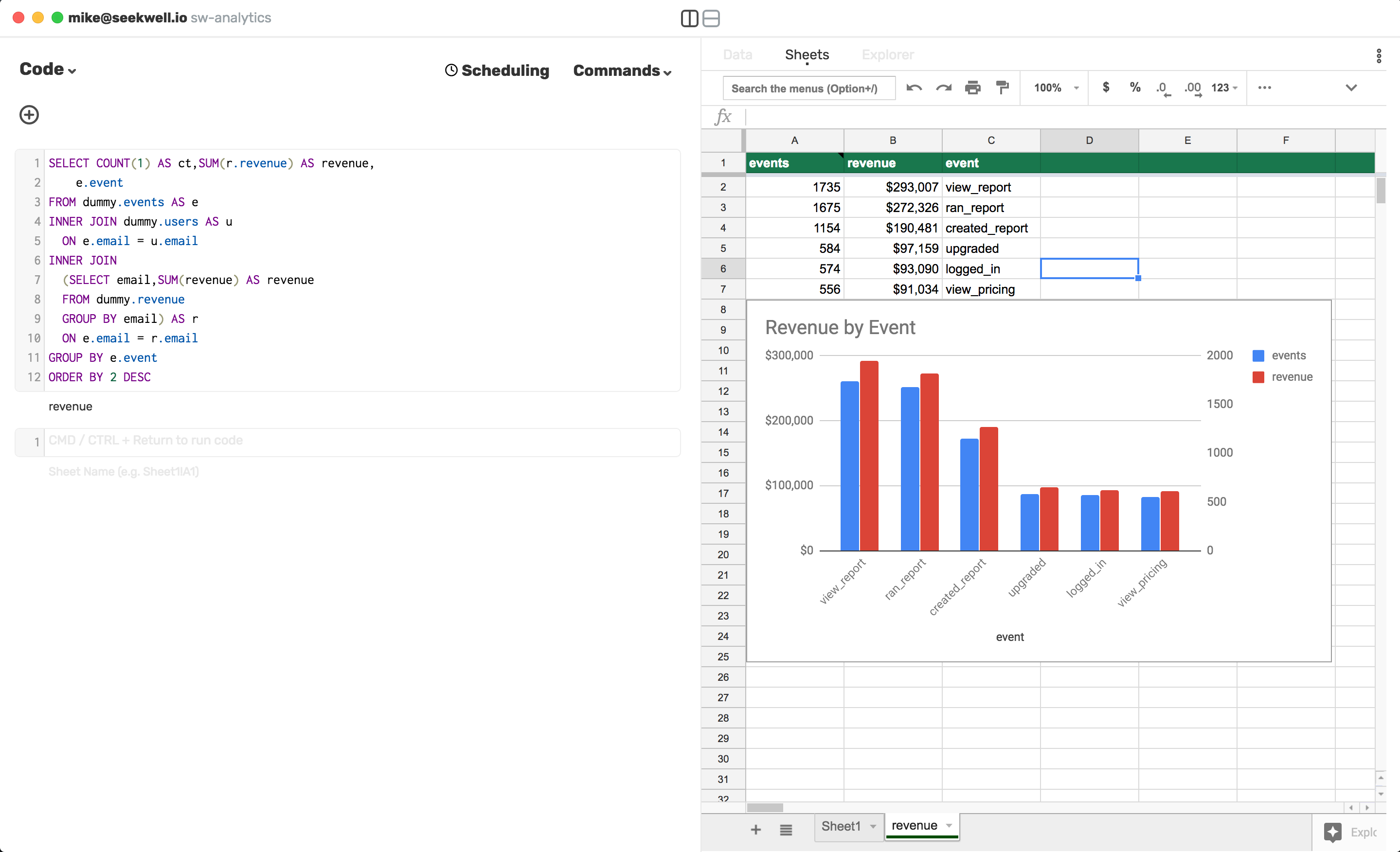 SeekWell helps data teams write SQL faster and automate dashboards in Google Sheets.